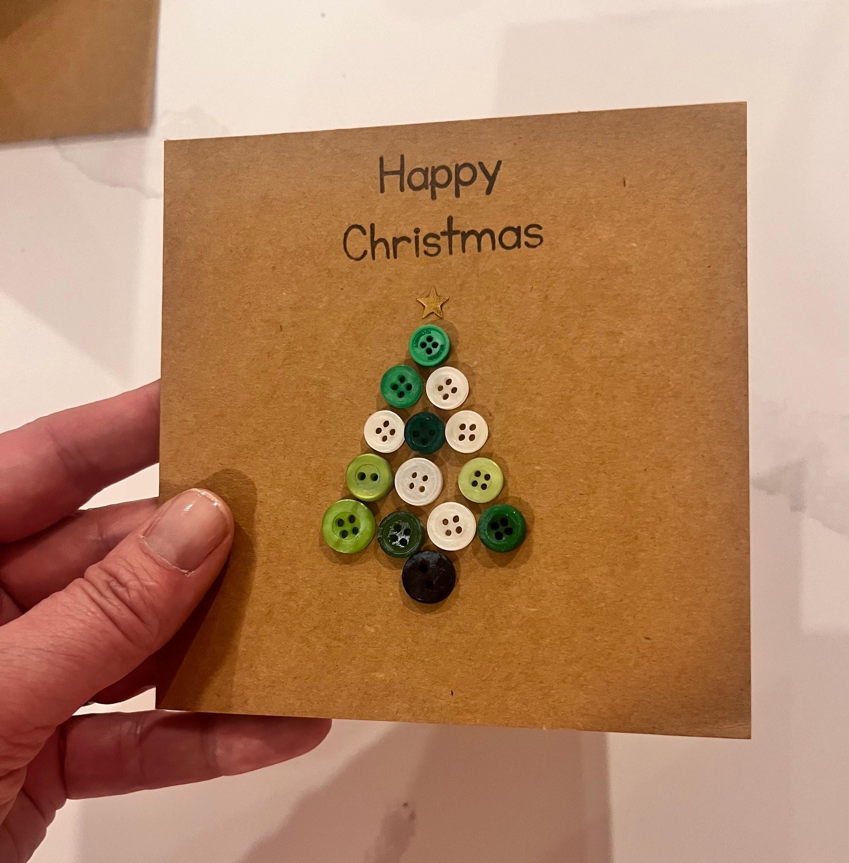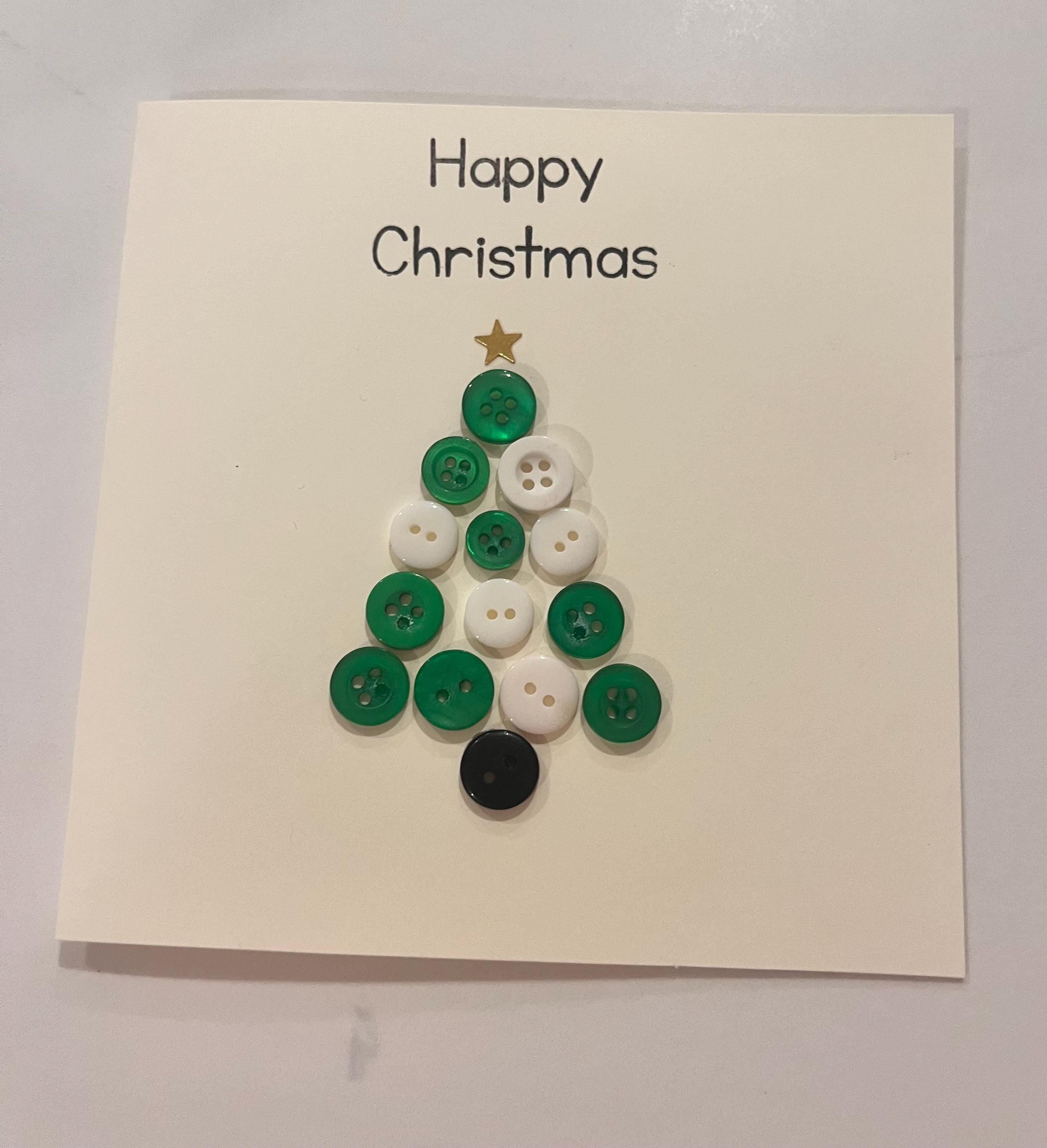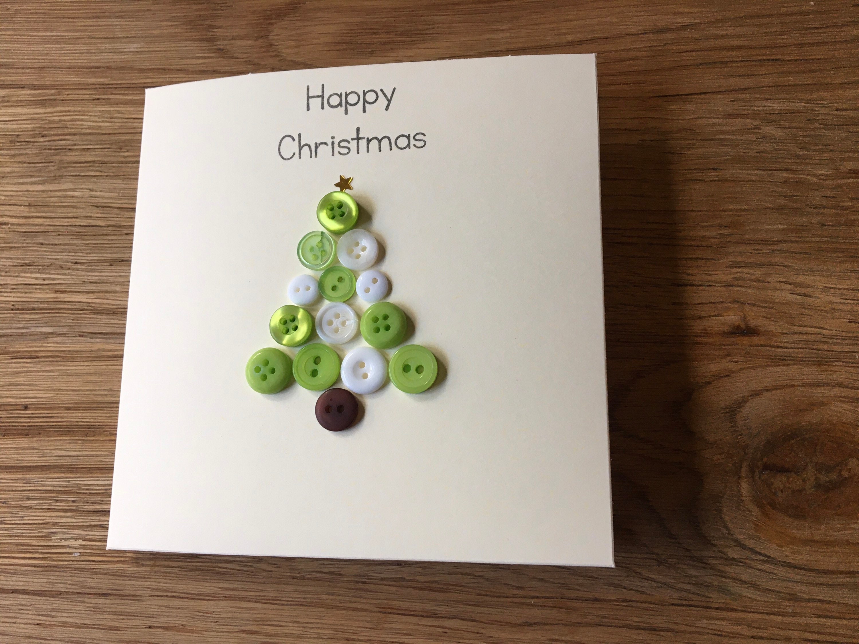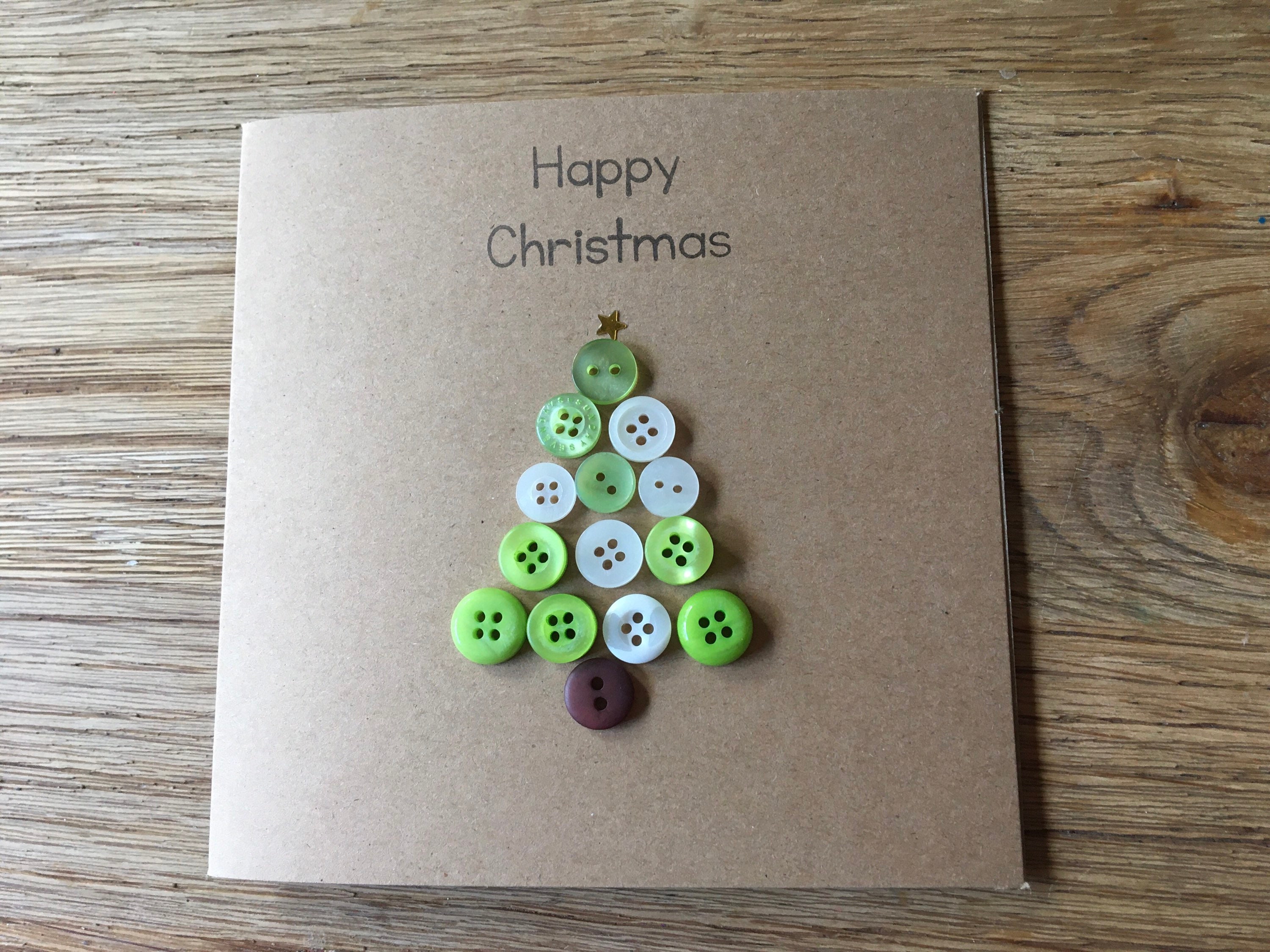 This card is my Christmas Tree button card ,handmade by me with green and white buttons and stamped with “happy Christmas “ in black ink and finished with a gold star to the top of the tree.