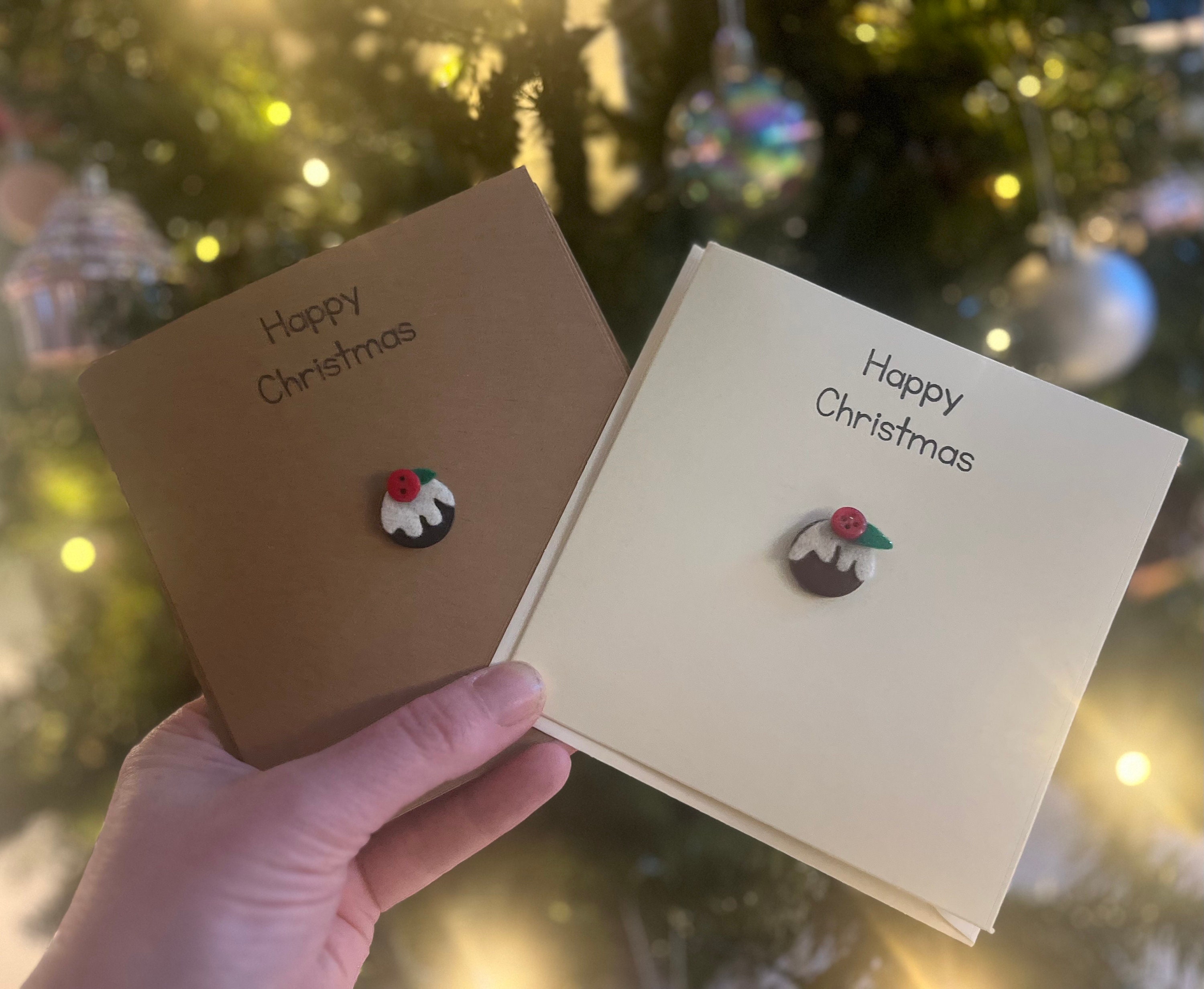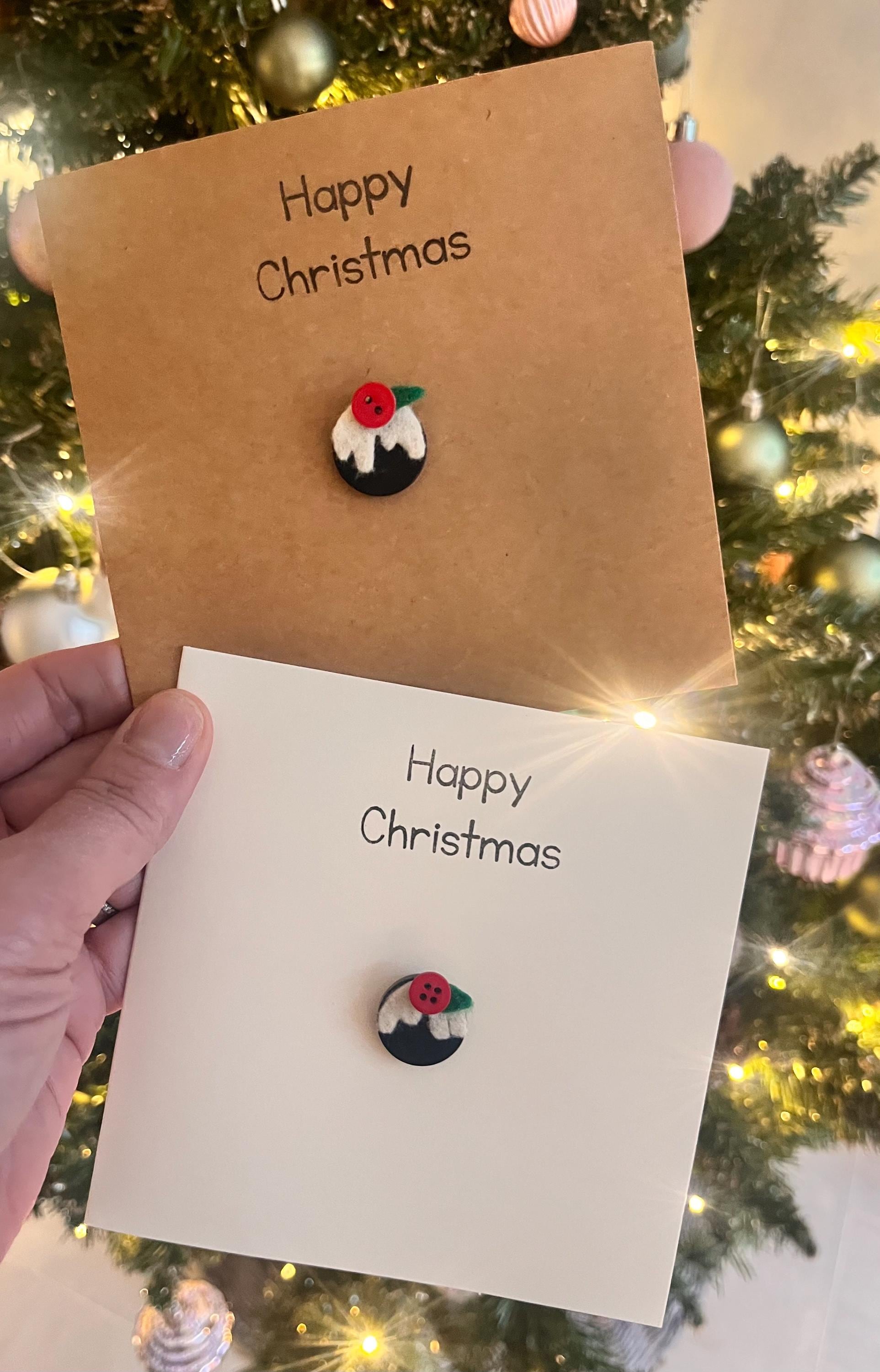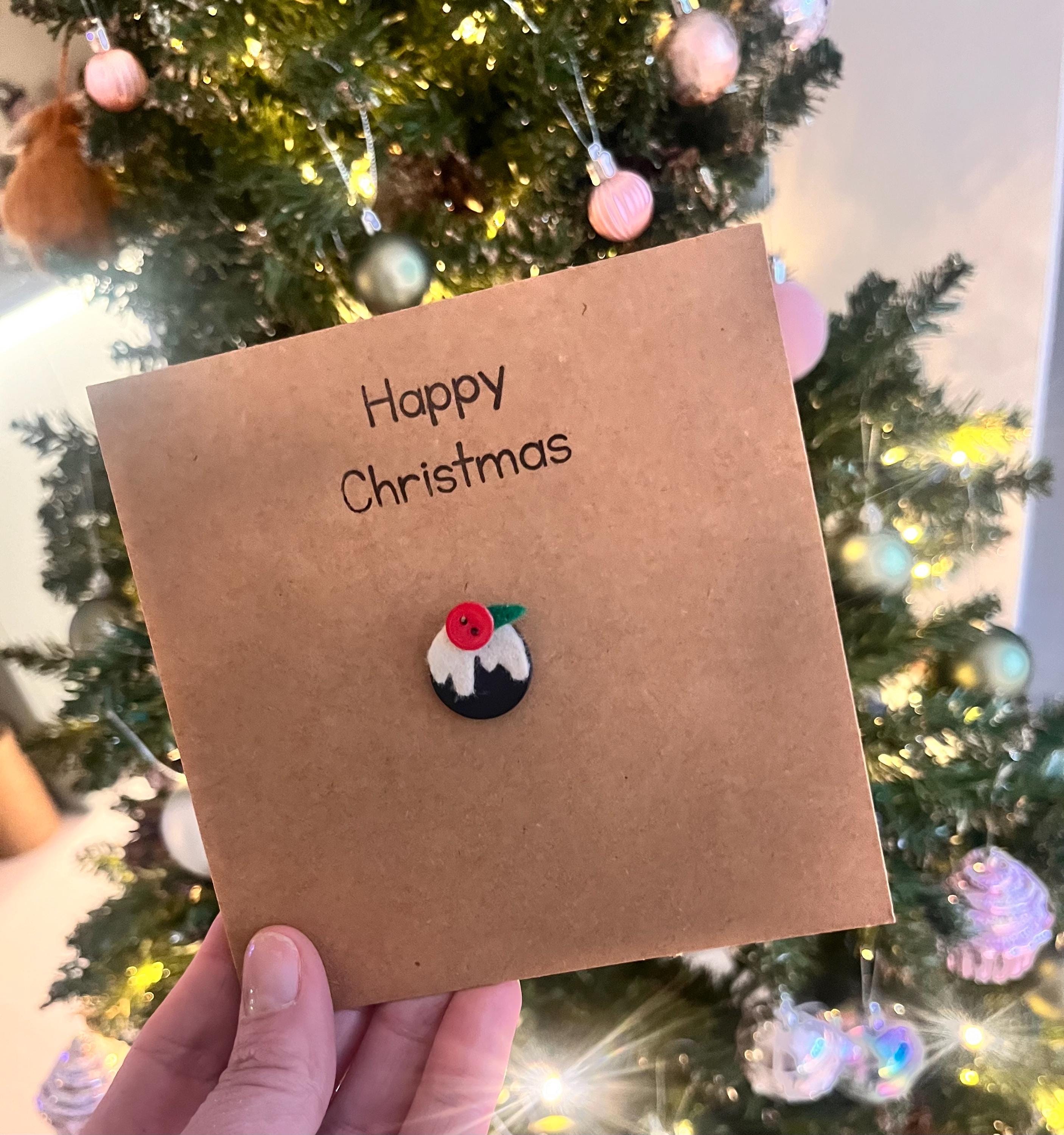 This card is my Christmas Pudding button card ,handmade by me and stamped with “happy Christmas “ in black ink.