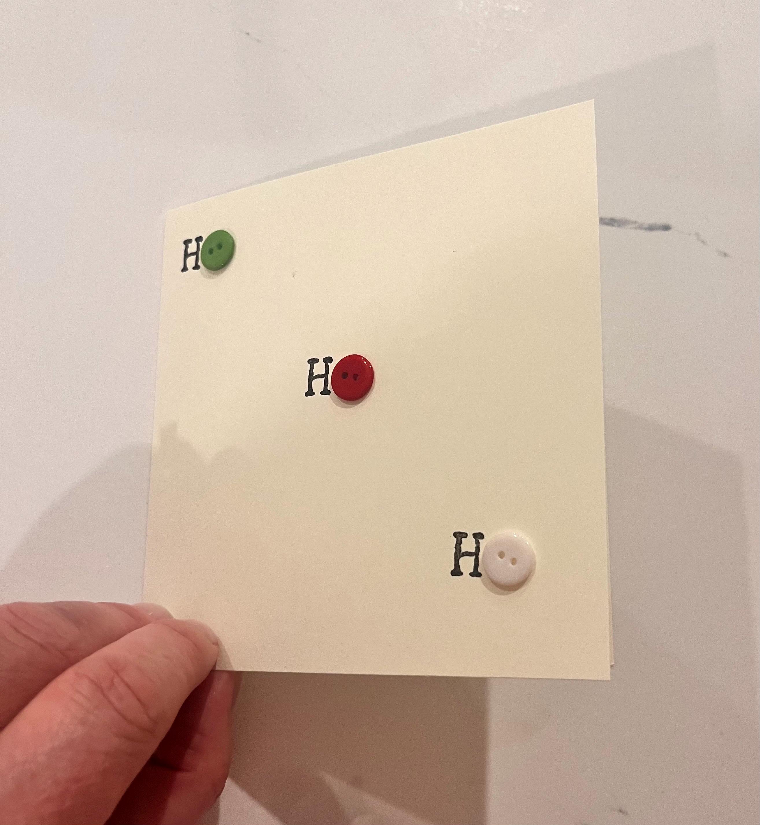 Each card is left blank on the inside and comes with a brown / cream square envelope. ( please note the Ho Ho Ho card is printed on the inside with happy Christmas as standard)